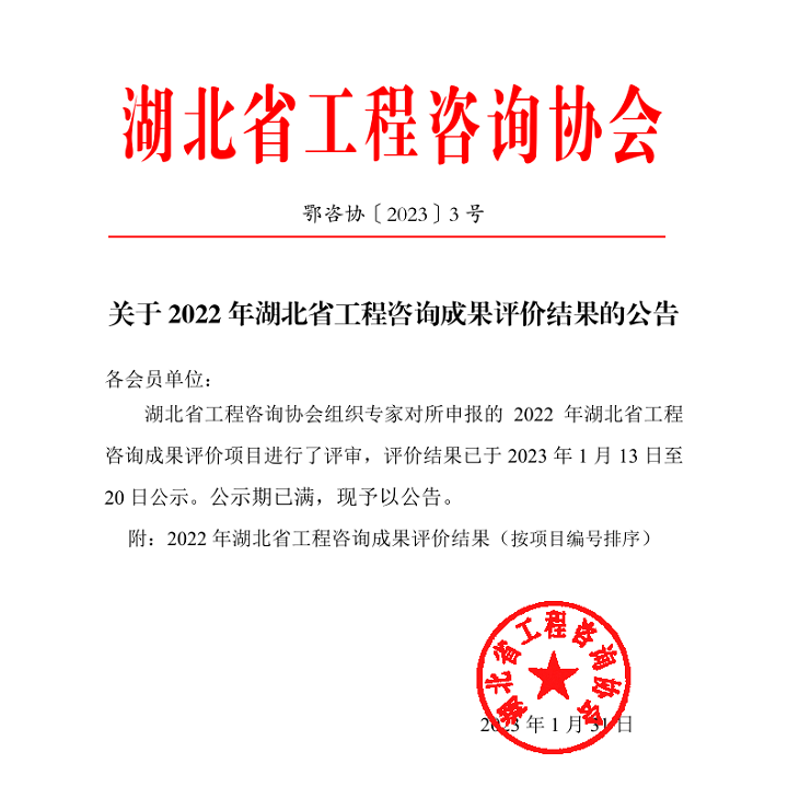 • 02-07公司2項成果榮獲湖北省工程咨詢成果等級...